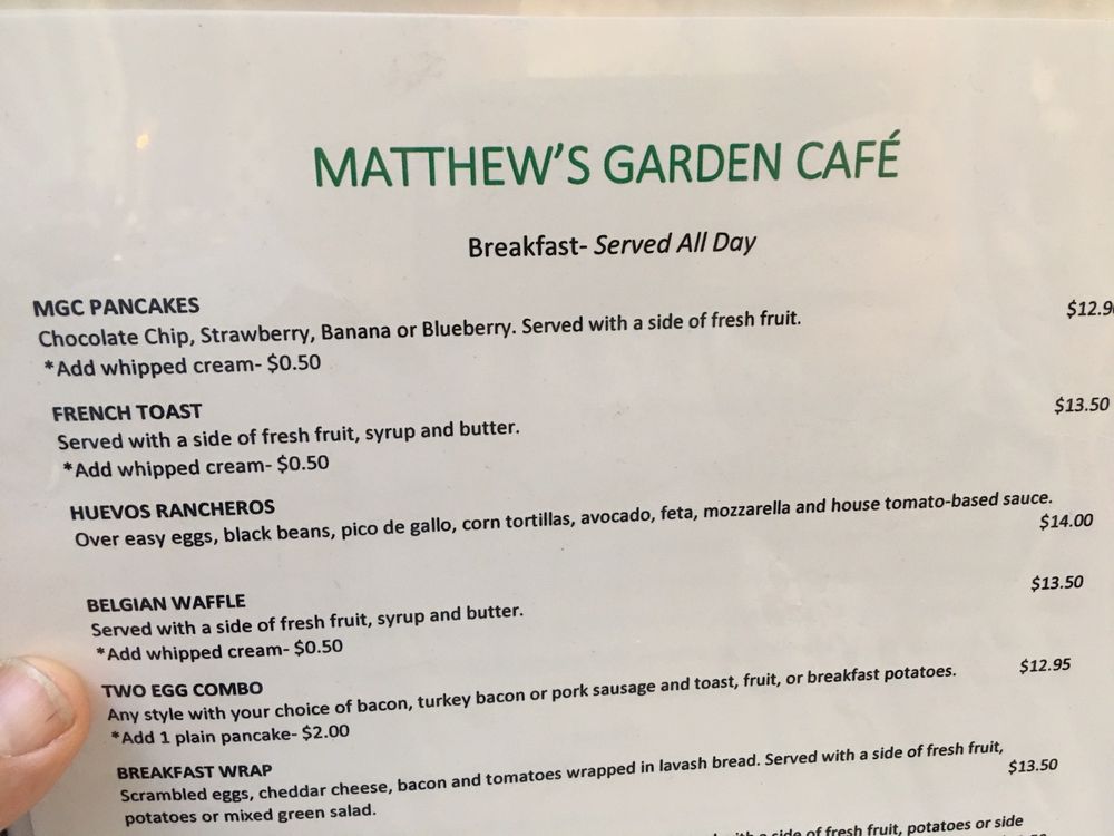 MATTHEWS GARDEN CAFE Menu (Update 2025)